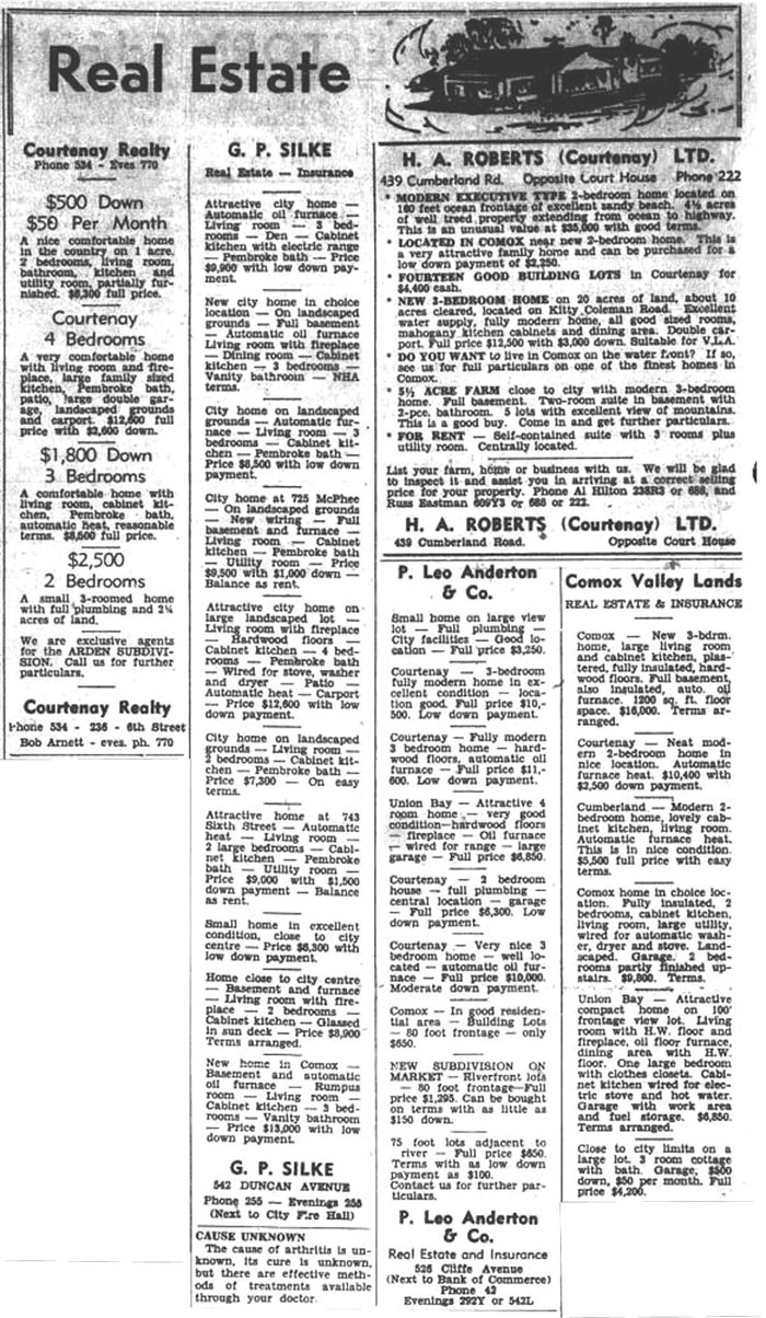 It's All There in Black and White: Comox Valley Real Estate in 1961
