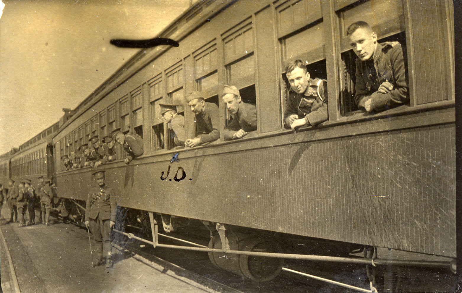 102nd Battalion soldiers arrive via the E&N Railway to train at Goose Spit, 1915.