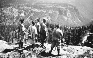 Here now is an image from the museum's newest award-winning book Step into Wilderness – A Pictorial History of Outdoor Exploration in and around the Comox Valley. Photo credit: Forbidden Plateau hikers, June 30, 1947. S.B.W. (Dusty) d’Esterre photograph. Photo: 998.219.221. Page 103.
