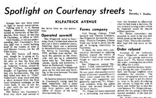This month Kilpatrick Avenue is in the limelight with tales of early civic politics, rivalries and good works all wrapped up in an article from the Comox District Free Press of April 15, 1970.