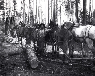 Photo caption: "By 1900, when larger companies turned their attention to the Island's interior timberlands, enough infrastructure was in place in the valley to improve people's livelihoods and the future success of resource companies." Page 93