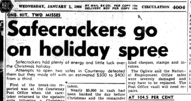 Yeggmen were at it again! It was "one hit, two misses" as reported in this article from the Comox District Free Press of January 1, 1964.