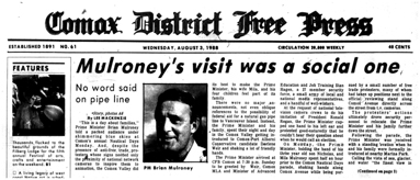 Love him or hate him, there's no denying it was a big day when Canada's 18th Prime Minister visited the town of Comox. Check out details of the "social call" in this August 3, 1988 edition of the Comox District Free Press.