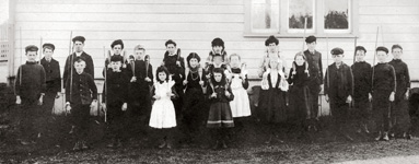 Photo credit: Courtenay Elementary School class brandishing sports equipment, ca.1906. Walter Gage photograph. CDM 983.55.1