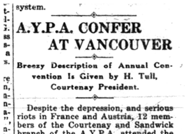 This month's article is a tongue-in-cheek account of the 1934 Anglican Young People's Association conference that appeared in the February 15th edition of the Comox District Free Press.