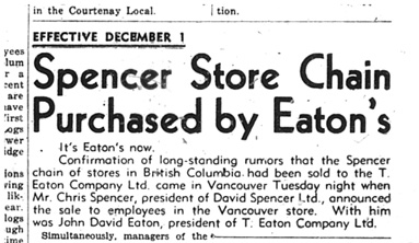 Christmas shopping got a bit of a shake up when the T. Eaton Company came to town as seen in this Comox District Free Press article from December 2, 1948.