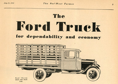 The Nor'- West Farmer magazine (which billed itself as "The Pioneer Farm Journal of Western Canada") of July 21, 1930 featured this informative ad about the 1 ½-ton Ford truck.