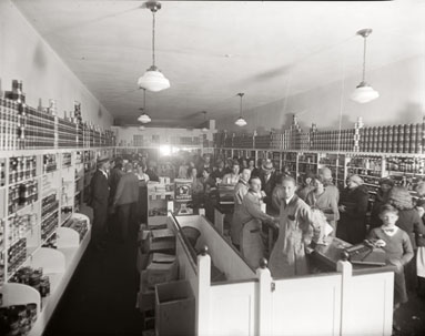 Photo credit: An impressive array of canned goods on display in the Safeway Store, 1932. Charles Sillence photograph.
