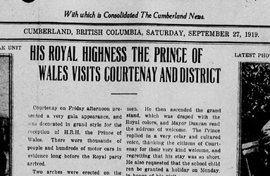 Merville's importance as a soldier settlement precipitated the Prince of Wales' visit to the Comox Valley on September 26, 1919.