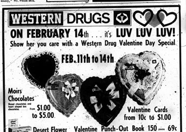 This ad for Comox's Winsby Western Drugs in the Comox Shopping Centre appeared in the February 4, 1970 Comox District Free Press. The prices will make you weep!