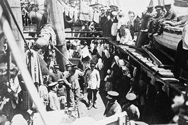 Passengers on board the SS Lake Huron, bringing the first group of Doukhobors to Canada, 1899. Library and Archives Canada, Doukhobors Collection, c005208.