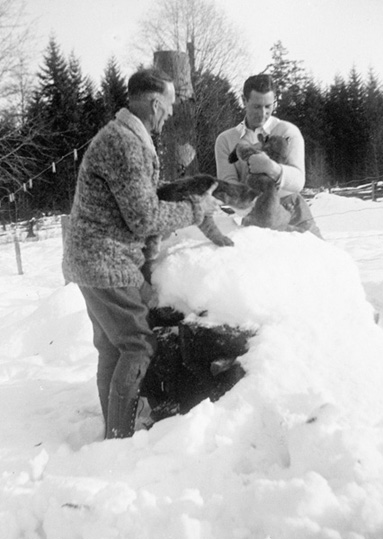 Photo credit: Cecil (Cougar) Smith (left) playing with cougar kittens, 1938. Smith was a cougar hunter and made a living by hunting from the bounty offered by the provincial government, which was later rescinded. S.B.W. (Dusty) d’Esterre photograph. Photo: 989.183.77. Page 185.