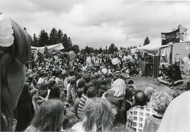 Audience enjoying the Manfrog Circus' Bizarro Brothers. Photo from the Comox District Free Press Collection, July 2, 1980.