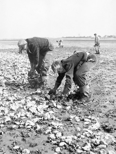Photo credit: Lee Vanstone (left) and unidentified friend oyster picking in Comox, 1948. S.B.W. (Dusty) d'Esterre photograph. Photo: 998.219.223. Page 150.