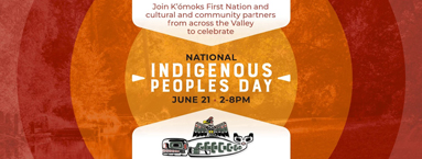 National Indigenous Peoples Day celebrations will be held at the Comox Valley Exhibition Grounds from 2:00 pm until 9:00 pm. Click here for the schedule, details, and how you can get involved.