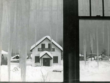 CDM #2020.15.3 Snow & icicles as seen from 595 Harmston Avenue, January 1950