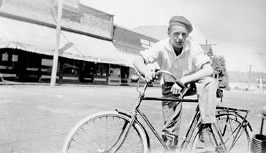 John Eric Lockner Jr. (b. 1907 in Cumberland) stops to pose along today’s 5th Street in Courtenay, pre-1921.