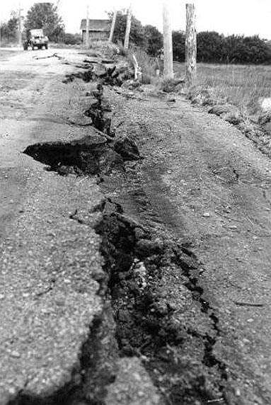 Damage to Comox Road from the earthquake of 1946. Credit: Comox Archives and Museum Society.