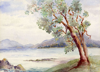 This summer, Capes Escape, the Courtenay Museum’s vacation rental house, was the scene of a family reunion, hosted by Pam Wilkinson of Courtenay. As the family was celebrating they noticed a small watercolour sketch. The original is in the Courtenay and District Museum, but it has been scanned and a framed copy sits on the desk at Capes House. After examining the sketch carefully they realized that it had been done by a relative. It was a sketch done by Edith Coton in or around 1925! The family, of course, was thrilled.