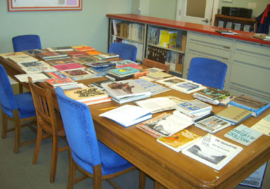 The new archives space provides room and light to tackle projects like the one pictured here…accessioning a large number of books donated by Bill and Sandy Heybroek.