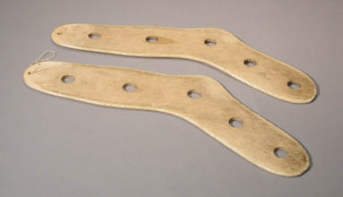 Known as sock stretchers, blockers, dryers or boards, wooden forms like those shown here were used to dry woolen socks without shrinking. The holes in the wood increased air circulation and lead to faster drying.