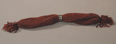 The artifact pictured is called a miser's purse - so named because both hands were required to open the pouches. These purses were used by both men and women in the 1860s to the 1880s.