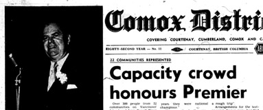Here's one you may not have seen coming...a testimonial dinner to honour then Premier W.A.C. Bennett recorded in the March 17, 1965 edition of the Comox District Free Press.
