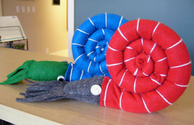 The museum has a great friend in Coral Dunn who is volunteering her time and talents to sew colorful elasmosaurs which have proven extremely popular. She's also created ammonites. These cute little guys are already a hit. Many thanks for all your work Coral!