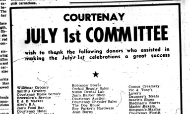Who's up for a round of "That Rings a Bell"? Take a look at this list from the Comox District Free Press of July 14, 1965 and see how many community minded businesses you can recognize.