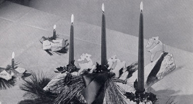 From the 1950s booklet "Glamour and the Hostess, a Guide to Canadian Table Setting" by Marie Holmes, comes these easy to follow directions for a Christmas Yule - Log table decoration.