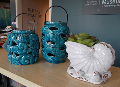 For adults, the shop now carries beautiful Friendship Glass Balls, coloured water bottles, ammonite planter pots and really lovely ceramic fish and shell lanterns.